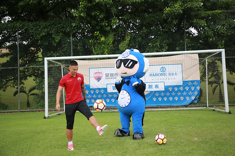 會后,雙方嘉賓移步至足球場觀看深足球員馳騁球場的颯爽風姿,一睹球員訓練風采。雷諾表品牌IP雷小諾也出現(xiàn)在球場,與球員們踢球互動。戲精雷小諾奔跑在球場上,三招兩式,踢球翻身現(xiàn)場就引來熱情圍觀。