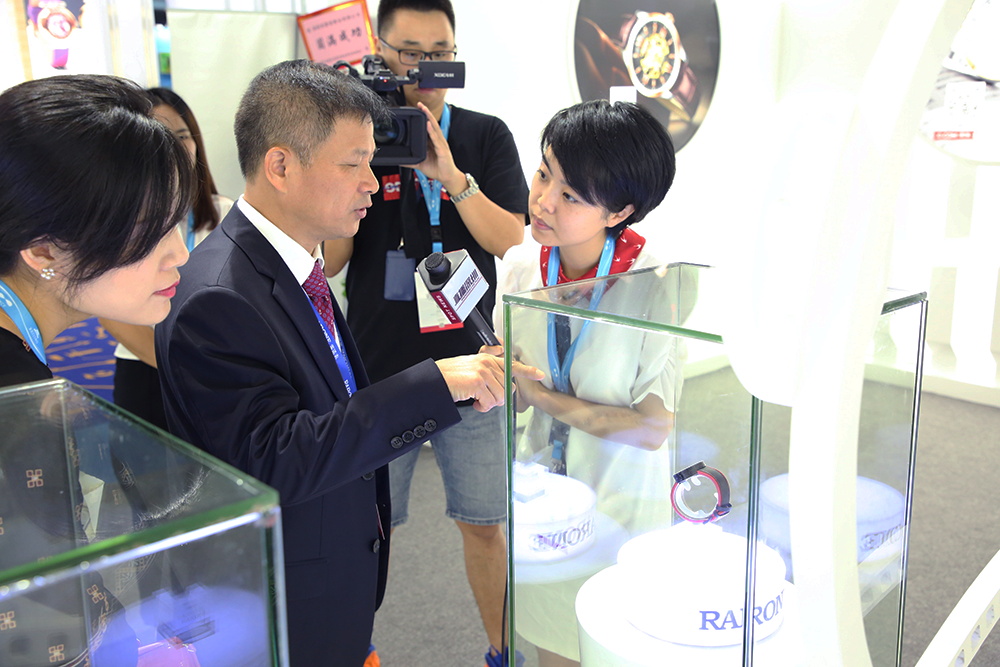 中國輕工聯合會張崇和會長;中國鐘表協會張宏光副理事長;中國鐘表協會丁言行副理事長一行蒞臨雷諾表展館參觀指導