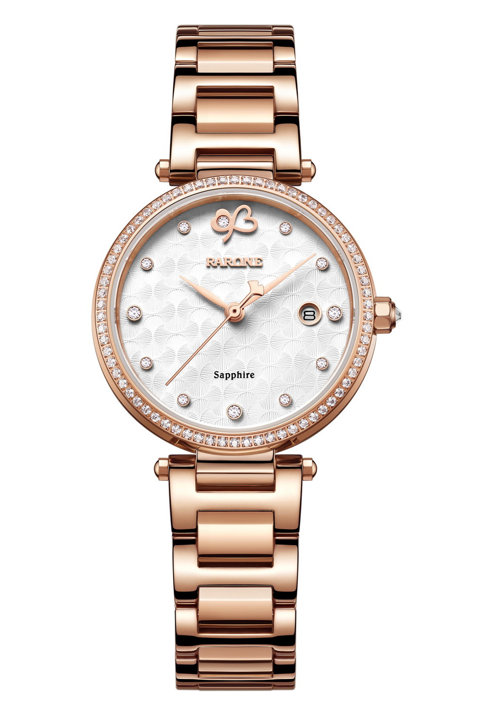 女神董潔優雅、內斂沉靜的氣質與新品銀杏款不謀而合,銀杏沒有花朵,僅僅因為葉子的春秋兩季的美態傾倒眾生。雷諾表夜色系列銀杏款以銀杏葉作為設計元素,演繹分秒更替的時光軌跡。浪漫銀杏葉裝飾秒針的頭部,銀杏葉心形的輪廓和絲狀的肌理鋪滿表盤,12點位以兩片銀杏葉交織在一起,寓意兩顆相愛的心交融在一起。在腕表底蓋上,一對愛人依偎而坐,意義雋永悠長,表達永恒之愛的主題。