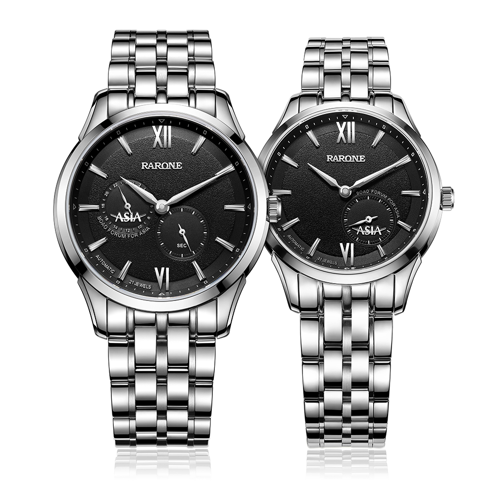 2016年新品以男女對表形式呈現(xiàn),搭載進(jìn)口全自動機(jī)械機(jī)芯,透視底蓋清晰可見機(jī)芯運(yùn)作。男女表在設(shè)計細(xì)節(jié)上做了區(qū)別,更加匹配男女士對美的不同追求。除了經(jīng)典的黑色,間金色之外,新款首次采用鋼藍(lán)色表針和字釘,為商務(wù)用表融入活力元素,同時視覺上更加清爽。大兩針搭配60秒功能小眼顯示時間,為當(dāng)下手表的熱門設(shè)計,男表9時位增加一個24小時功能小盤,方便知曉和調(diào)教多維度時間。表盤上的“ASIA”標(biāo)識體現(xiàn)腕表的身份和紀(jì)念價值。
