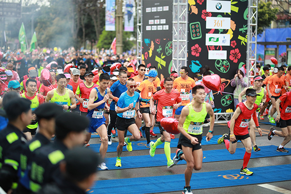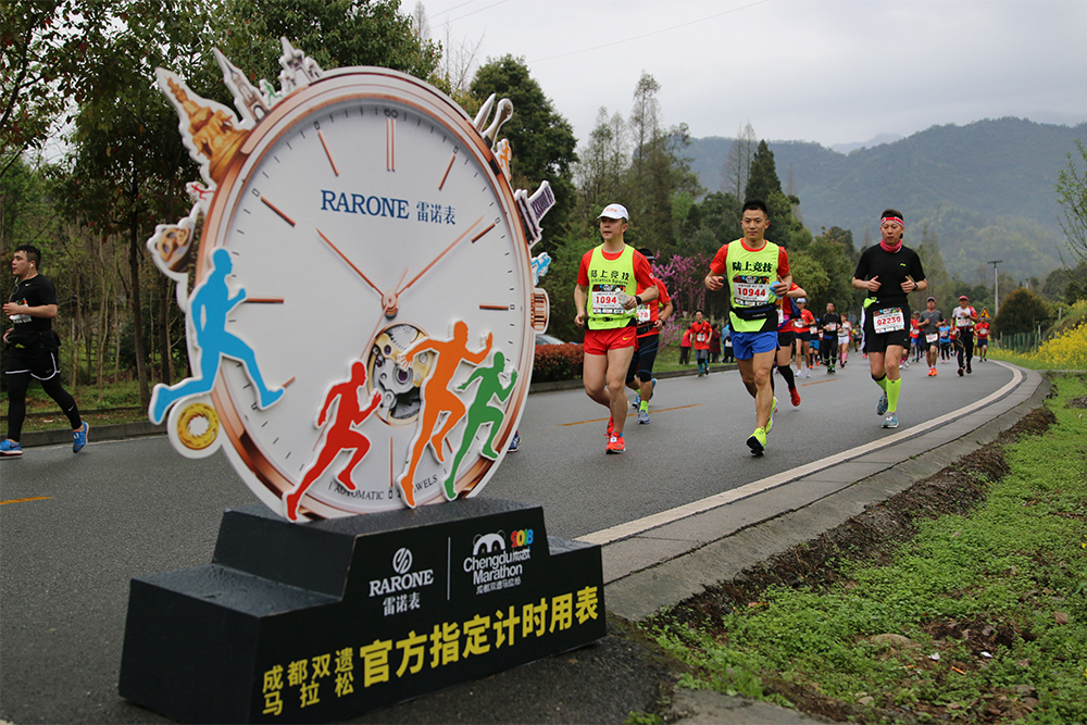 2018年3月18日,一年一度的成都雙遺馬拉松在都江堰隆重舉行。來自世界29個(gè)國家34個(gè)省市的3萬多名參賽選手齊聚馬拉松賽道起點(diǎn)。雷諾表作為賽事官方指定計(jì)時(shí)用表,為比賽事精準(zhǔn)計(jì)時(shí)。在起跑倒計(jì)時(shí)5分鐘、3分鐘、1分鐘后鳴槍開跑,選手們激烈追逐、奔騰如流,場(chǎng)面十分激烈。