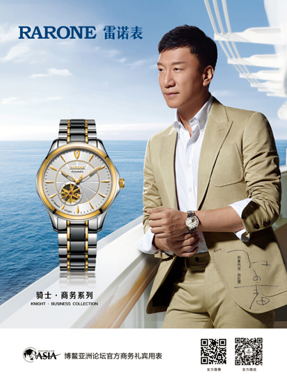 同時,作為商務手表品牌,雷諾表自2010年起成為博鰲亞洲論壇長期合作伙伴,并每年為參會的政商界精英敬獻商務之禮,并于2011年起邀請著名影星孫紅雷先生正式代言雷諾表。