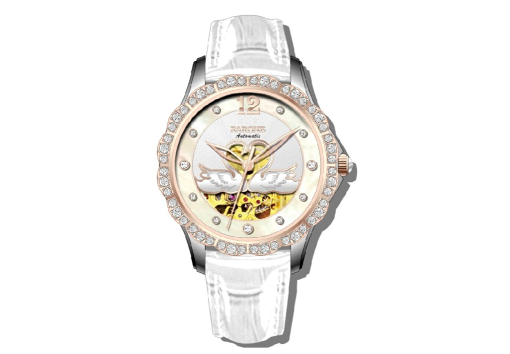 主打知性商務(wù)風(fēng)的夜色系列,在去年推出備受市場(chǎng)歡迎的“天鵝守護(hù)”陶瓷款之后,再度升華“守護(hù)”概念,加入更多代表幸運(yùn)的“水晶”元素,花瓣形表圈鑲嵌48顆不對(duì)稱(chēng)水晶石,增添腕表的璀璨與時(shí)尚,天然貝母面,使腕表更優(yōu)雅華美。表盤(pán)中心兩只天鵝相依成心形,象征忠貞不渝的愛(ài)情和守護(hù),極致唯美浪漫。