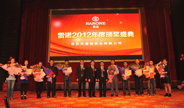 雷諾表業有限公司2012年度頒獎盛典暨聯歡晚會,于2012年12月20日晚在花園酒店盛大召開,雷諾表全體員工、終端銷售精英和重要客人共享了此次年度盛會。